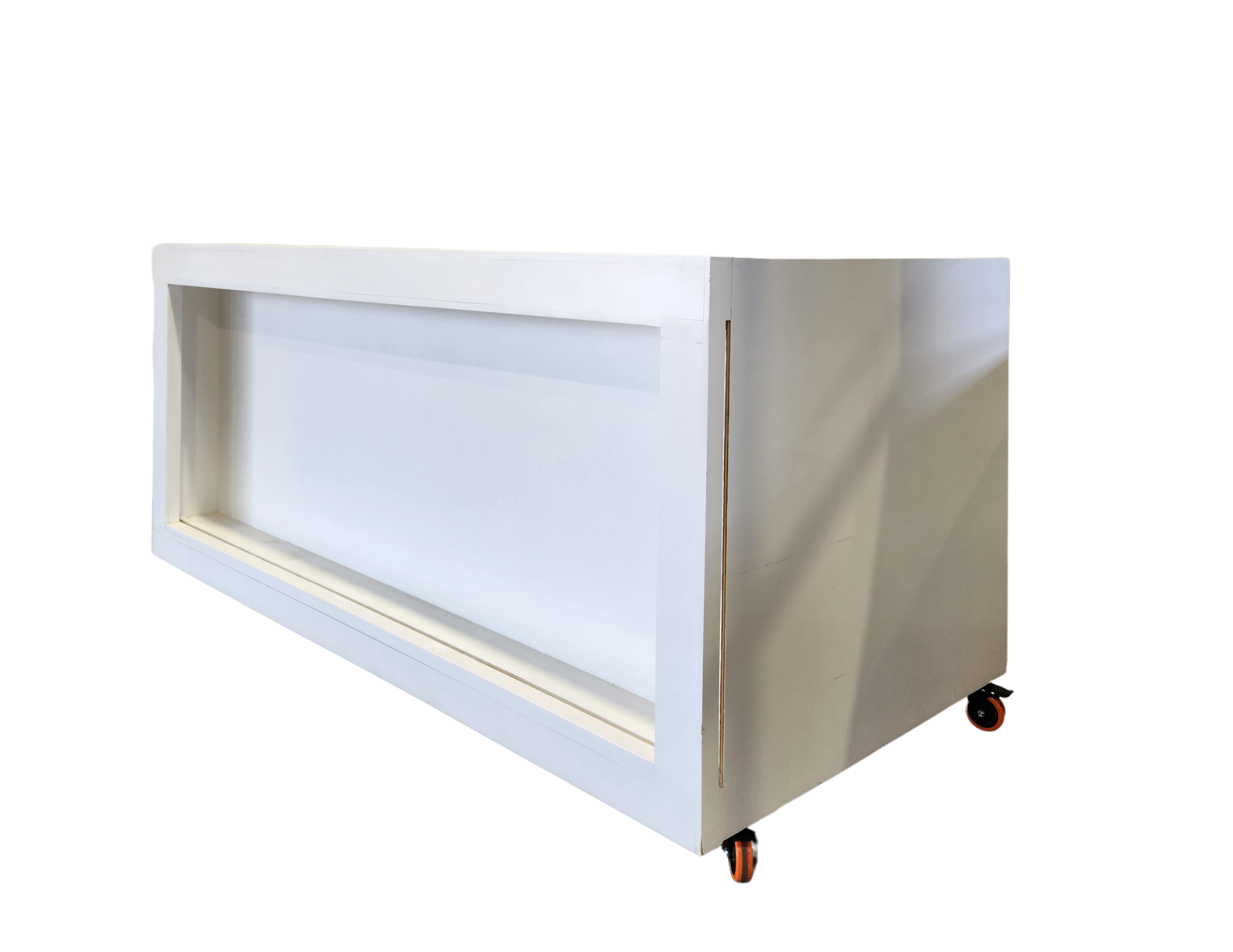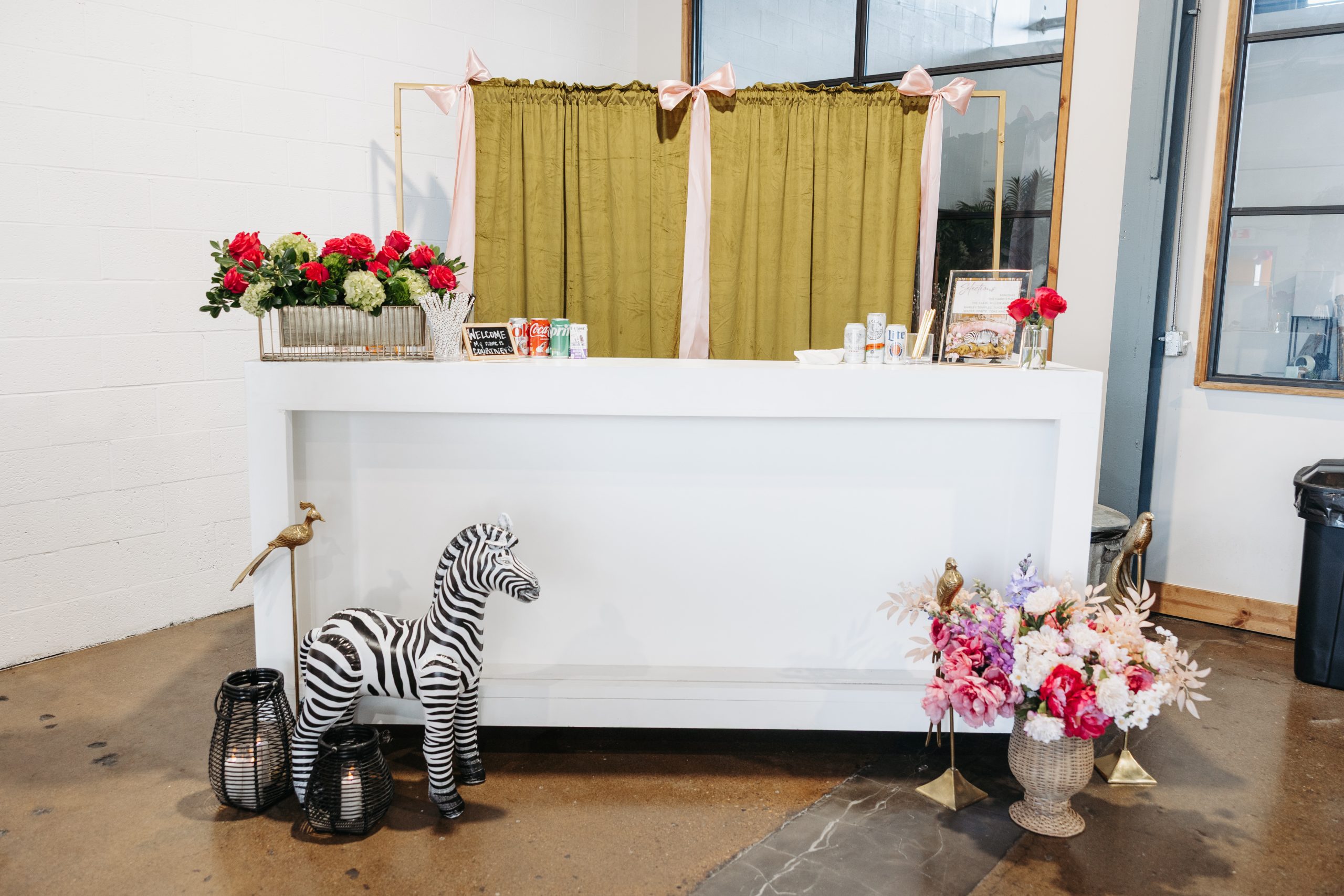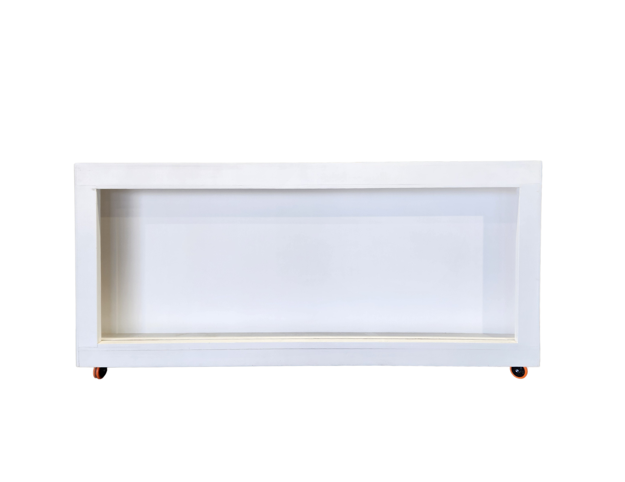 This white bar rental in Indianapolis suits a range of event styles — from minimalist wedding receptions and gallery-style cocktail hours to upscale corporate galas. Its clean, monochrome finish allows it to blend into white-walled venues or stand out as a crisp focal point in garden and industrial loft settings.