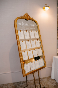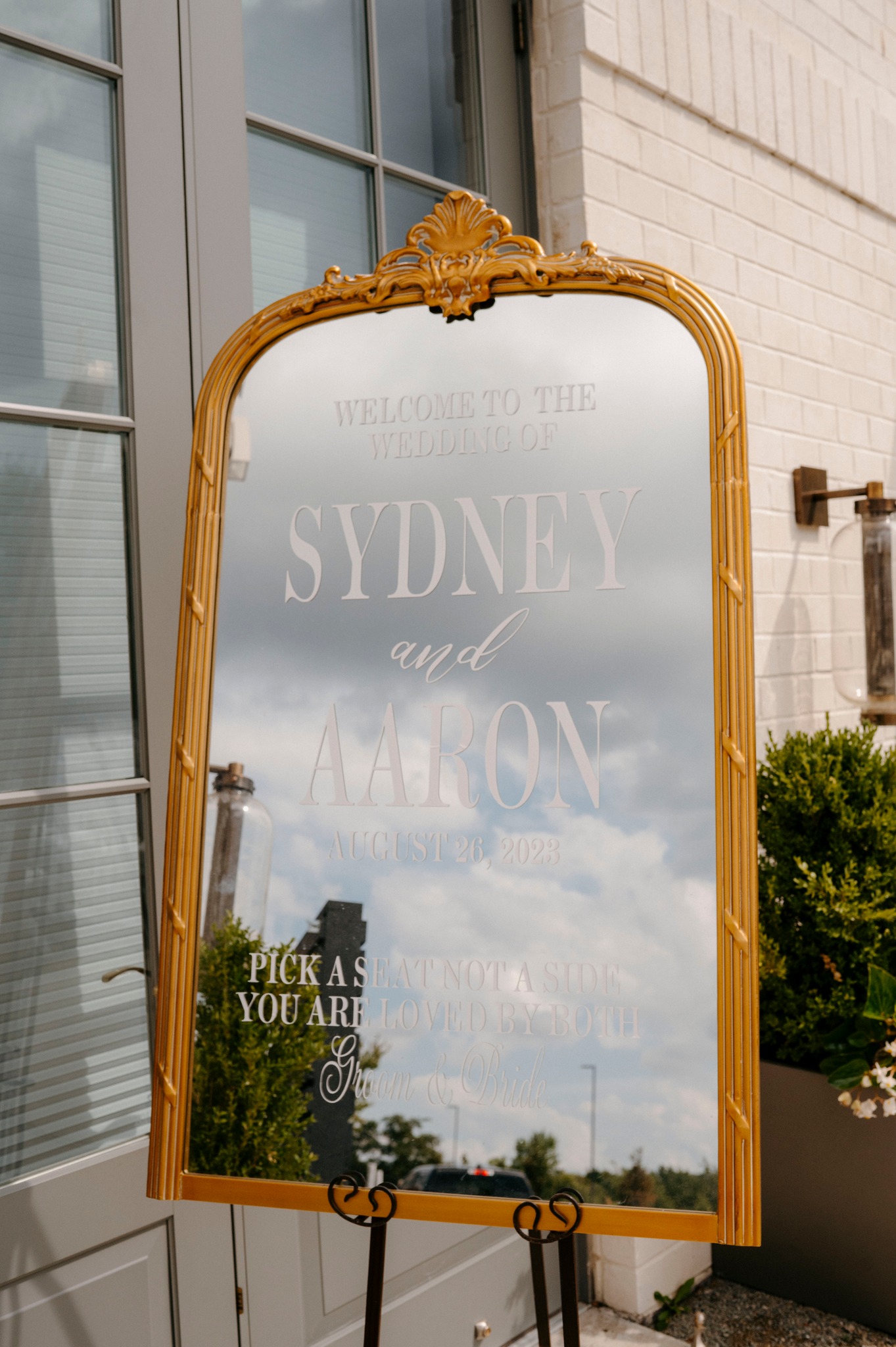 We can add writing to the mirror for you, but we do not create in-depth seating charts. We’re happy to handle the main text, and you can add any remaining details yourself!”