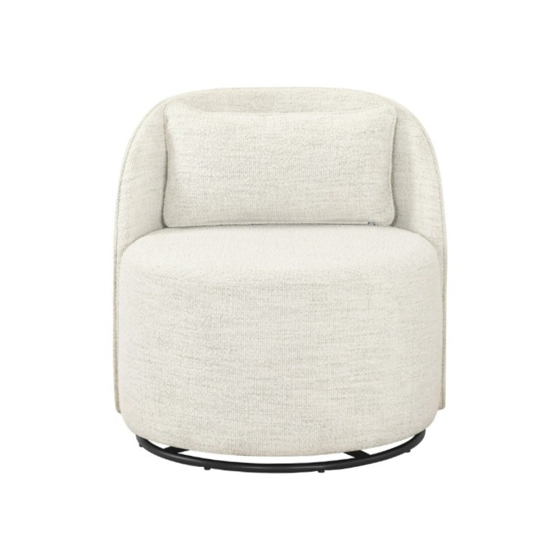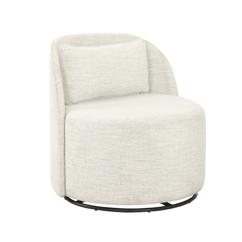Cloud-nine comfort with a 360-degree view! Our Margaux Bouclé Swivel Chair pairs trendy, off-white cream fabric with a sleek black base for displaying the ultimate modern-organic vibe at your next Indy event. Add to wishlist for a quote!