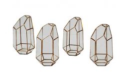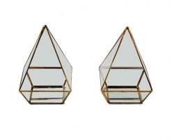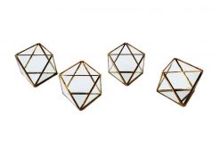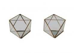 Ready to add some seriously chic angles (and a delightful home for your creative visions!) to your tabletops? Our rentable Orbis Lanterns from Violet Vintage in Indianapolis are here to bring a dazzling, contemporary glow to your special occasion! This captivating collection features an enchanting assortment of modern geometric terrariums, each boasting its own unique faceted shape and sleek design. Crafted from elegant gold and clear glass, these beauties are designed to catch every glimmer of light, adding a bit of sophisticated shimmer wherever they’re placed.