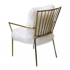 Ready to add a dash of cozy glamour (and the fluffiest seat in the house!) to your décor? Our rentable Sherpa Chair from Violet Vintage in Indianapolis is here to bring a sense of modern luxury and pure fun to your special occasion! This isn’t just a chair; it’s a major statement. It features a plush, cloud-like white Sherpa fabric that covers a high back and cozy seat, all supported by a sleek gold geometric frame.